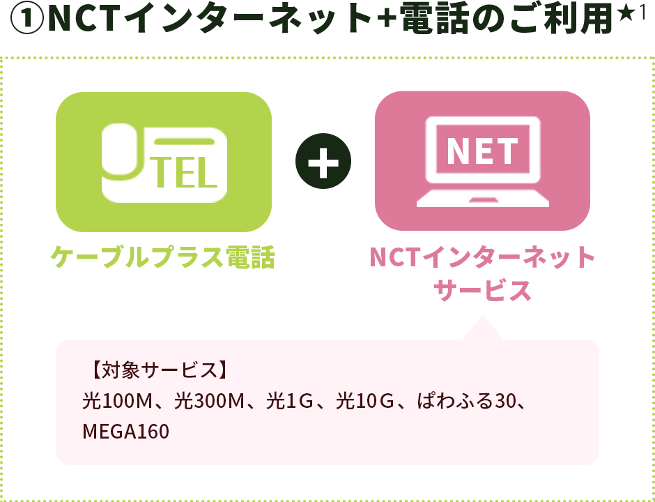・NCTのサービスを「利用中」または「手続き中」の場合も、割引の適用となります。