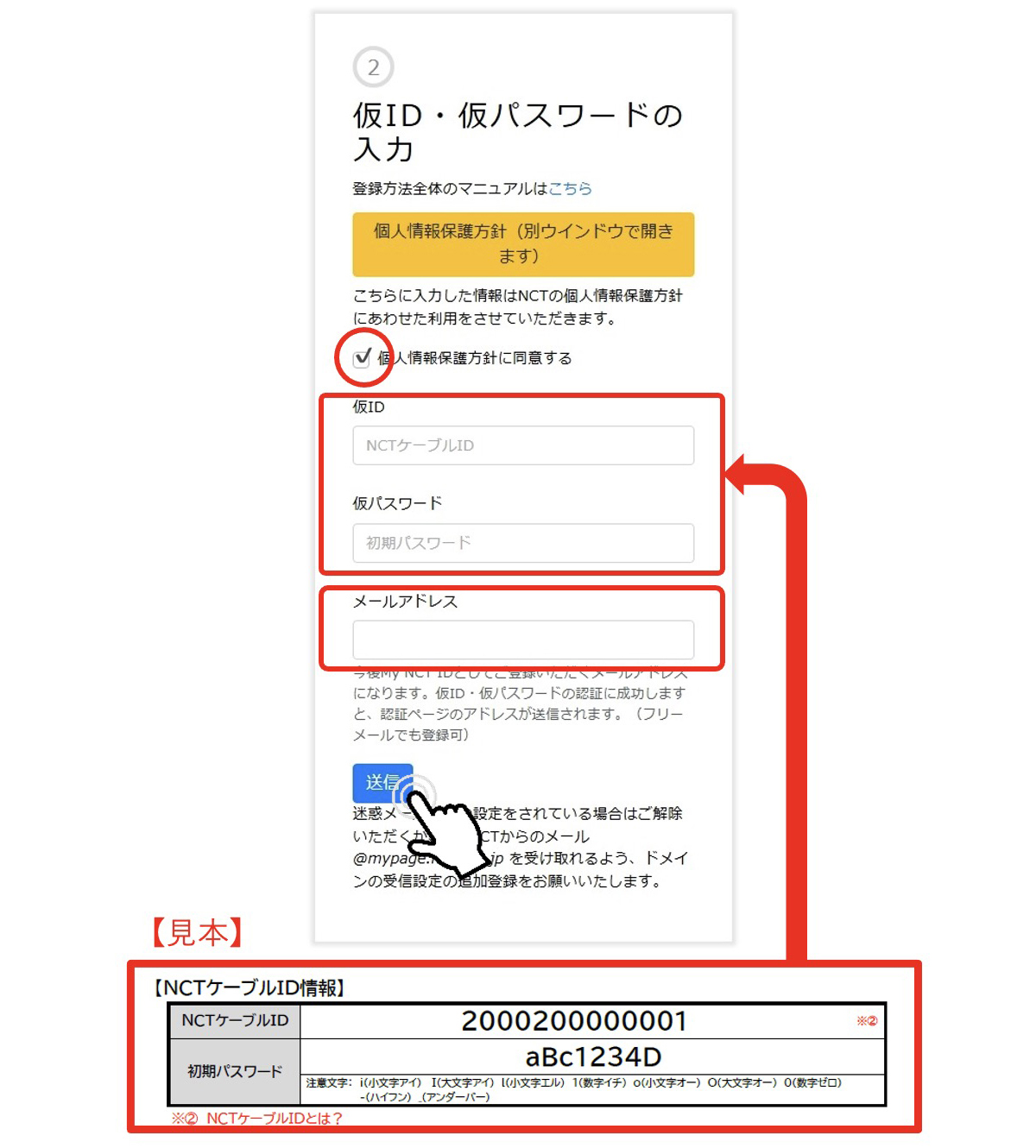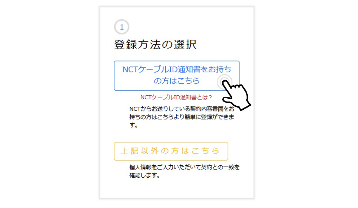「NCTケーブルID通知書をお持ちの方はこちら」を選択