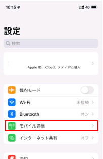 | 2 | 「モバイル通信」をタップ | ![]() |