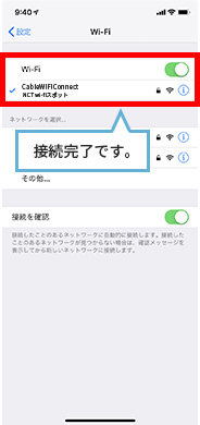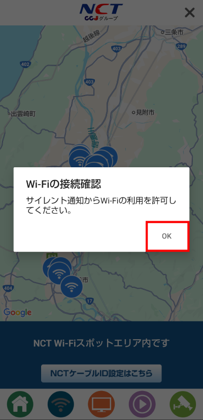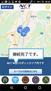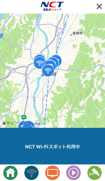 ④利用中の場合、画面下部に「NCT Wi-Fiスポット利用中」と表示されます。